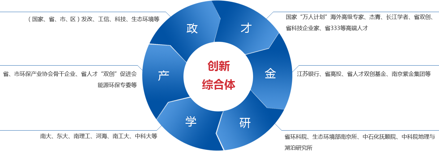 中電環(huán)保發(fā)揮行業(yè)龍頭作用,聯(lián)合“政產(chǎn)學(xué)研金才”綜合資源,打造“環(huán)保產(chǎn)業(yè)創(chuàng )新綜合體”,包括:“二區、三聯(lián)盟、三中心、七功能”。 二區:國家級環(huán)保服務(wù)業(yè)集聚區、江蘇省級生態(tài)環(huán)境產(chǎn)業(yè)創(chuàng )新集聚區。 三聯(lián)盟:環(huán)保產(chǎn)業(yè)技術(shù)創(chuàng )新聯(lián)盟(科技部1個(gè)、生態(tài)環(huán)境部1個(gè)、南京市1個(gè)),同時(shí)成立黨建聯(lián)盟。 三中心:環(huán)保產(chǎn)業(yè)創(chuàng )新中心暨創(chuàng )新公司。分別聯(lián)合南大、東大、河海等及其人才團隊、省環(huán)科院、地方政府,通過(guò)股權緊密合作,按照“中心+公司”模式建設新型研發(fā)機構。 以“產(chǎn)業(yè)+平臺”雙翼模式發(fā)展產(chǎn)業(yè),以市場(chǎng)需求導向研發(fā),促進(jìn)科技創(chuàng )新、人才創(chuàng )業(yè)、成果轉化和產(chǎn)業(yè)集聚,孵化高科技企業(yè),賦能產(chǎn)業(yè)創(chuàng )新發(fā)展,打造環(huán)保支柱產(chǎn)業(yè)。