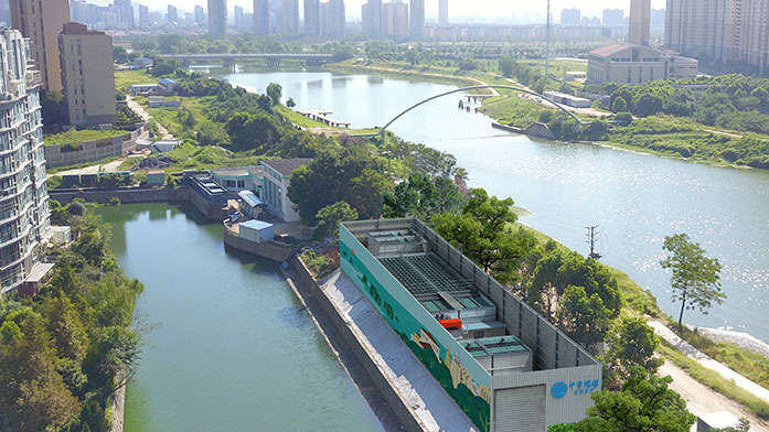 治理措施:采用“源頭截污、就地凈化、集散結合、清水回補”的思路,采用自主研發(fā)的 “懸浮床” 及“三相增強”生物膜反應器等核心技術(shù),運用污水模塊化裝置(CBS),在河道、泵站前池、污水匯集區域就近設置,為城市內河、流域斷面水質(zhì)達標提供保障。
